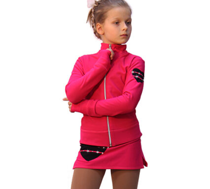 The undoubted advantage of the set consisting of the jacket and pants, is a perfect cut. The complex relief lines provide an excellent fit and accentuate the figure the best way. Sleeve “Raglan” by winning way underlines the sporting mood of the model and also makes the jacket the most convenient and comfortable .A perfect comfort of the pants is provided by the Italian fabric Vuelta with a beautiful stretch in all directions, as well as excellent indicators of recoverability. The best fit which is provided by the great cut and easy mounting of the cutout heel on the lobster clasp under the boot ensure that your child is always neat.