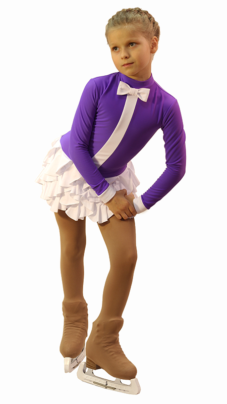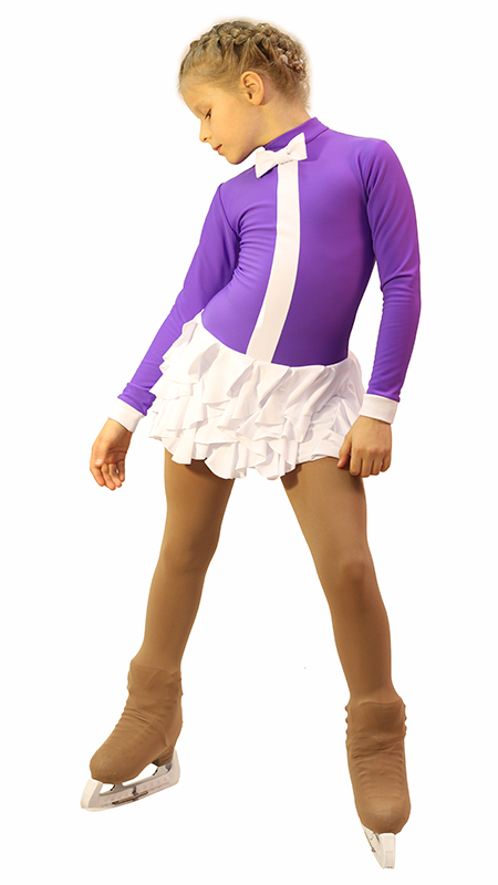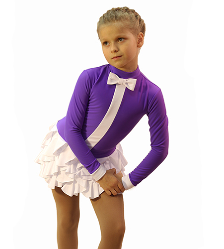 Laconic color combination, well-balanced design and the original design of the skirt was the base in creating this model. The fit of the skirt solved a very unusual way – the ruffles are arranged in a spiral, making model to be original not only in a static position, but in motion. And the bow tie adds style and charm. The model has already caught the fancy of not only creators but also the customers. In this dress your child will be guaranteed to stand out on the ice and feel like a leader.