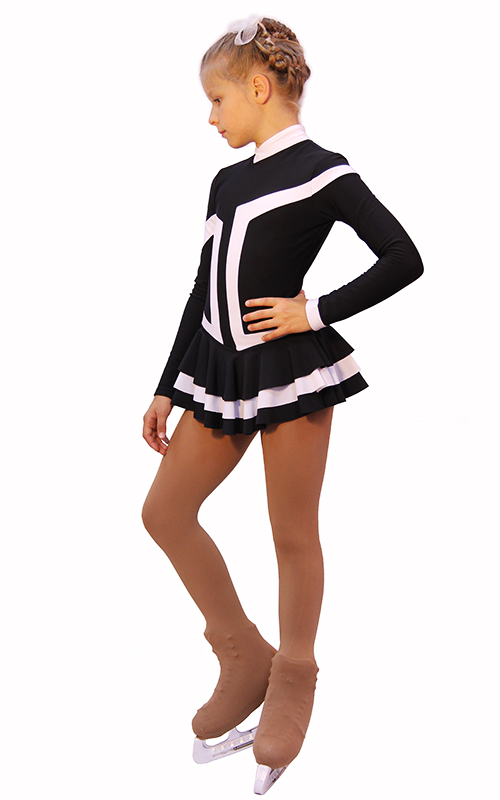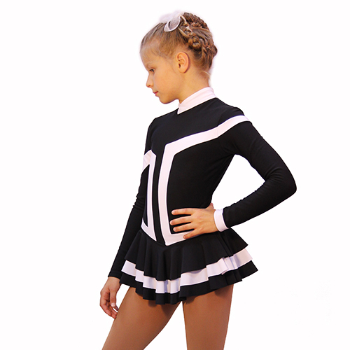 Bright colour combination, expressive design and ingenious engineering solution were the base in creating of this model. The principle of asymmetry formed the basis for the creation of this dress. No detail in the dress is not repeated, and three-layer skirt makes the model playful and flirty .The dress is loved by creators and customers as well. In this dress your child will stand out on the ice and feel like a leader.