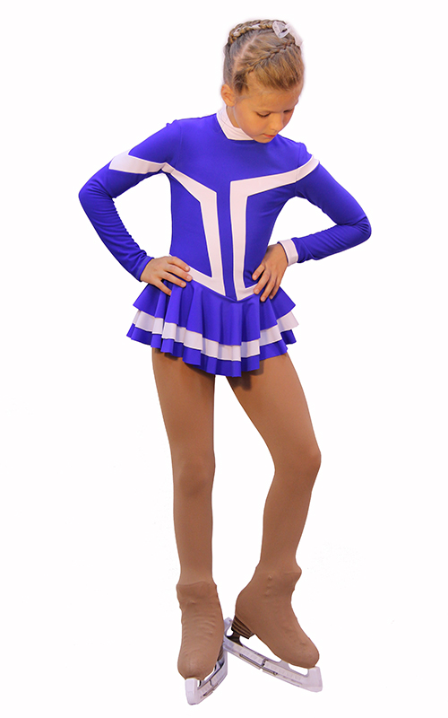 Bright colour combination, expressive design and ingenious engineering solution were the base in creating of this model. The principle of asymmetry formed the basis for the creation of this dress. No detail in the dress is not repeated, and three-layer skirt makes the model playful and flirty .The dress is loved by creators and customers as well. In this dress your child will stand out on the ice and feel like a leader.