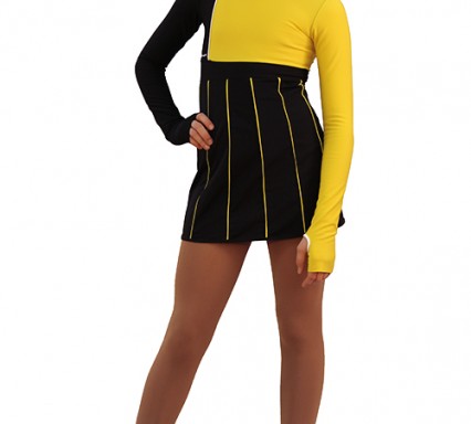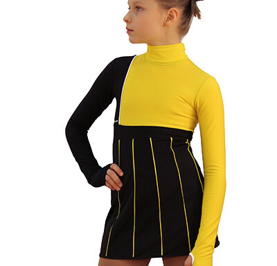 “Ice fashion” This dress represents the sports fashion 2018-2019. Contrast combination of colors, constructive design and asymmetry principle became the basis of that set. Precise lines and extraordinary skirt makes the dress even more catchy and mindbending. We wanted to create a set that would make your child look stylish and feel self-confident. The fabric is warm, soft and really comfortable.