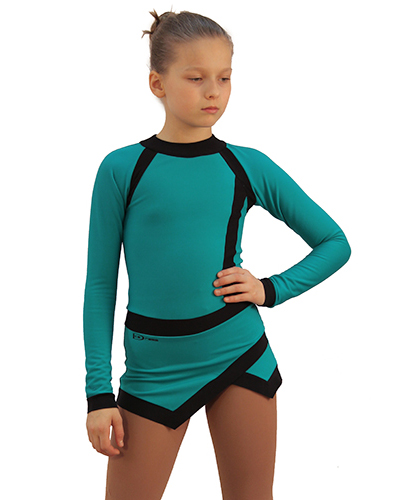 The contrasting colour combination, bright sporty design and the original designer’s solution were the basic points when creating this model. Asymmetrical lines of a complex configuration, the sporty design of the skirt, Raglan sleeve and fit – all this attracts the eye. In this dress your child will be guaranteed to stand out on the ice and feel like a leader.