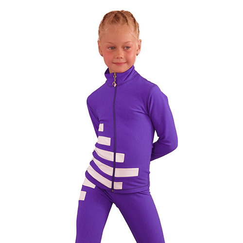 Set “IceCode” consists of thermo-jacket and thermo-pants with the original design course. For strict and laconic model this decision is the main focus. An asymmetrical arrangement of horizontal stripes placed on the jacket and pants attract attention in any visual projection. These finishes allocate the figure of the young athletes on the ice the best way. The perfect fit gives freedom of movement. A stitched in sleeve accentuates the sporty mood, making the jacket very comfortable. The bottom of the pants are decorated in an unusual manner and has a clasp that secures the pants under the heel of the shoe.