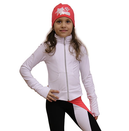 We are pleased to offer you one of variants of combination – kit “Twizzle-1”. The kit includes: jacket “Drape-1” white, 3-color leggings (black, coral, white) and coral cap with thermo applique