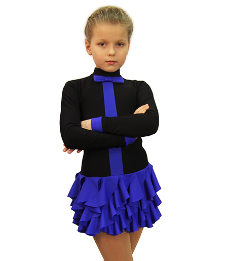 Laconic color combination, well-balanced design and the original design of the skirt was the base in creating this model. The fit of the skirt solved a very unusual way – the ruffles are arranged in a spiral, making model to be original not only in a static position, but in motion. And the bow tie adds style and charm. The model has already caught the fancy of not only creators but also the customers. In this dress your child will be guaranteed to stand out on the ice and feel like a leader.